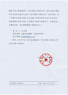2017年3月17日,四川省電力承裝(修、試)工作會(huì)議,在成都桃園酒店召開(kāi)。本次大會(huì)參會(huì)企業(yè)共計(jì)613家,其中一級(jí)企業(yè)20家、二級(jí)企業(yè)84家、三級(jí)企業(yè)96家、四級(jí)企業(yè)345家、五級(jí)企業(yè)68家,遍布全省21個(gè)市州。