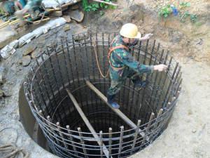 在房屋建筑的軟土地及中插入金屬電極,通上直流電,將軟土地基中的水分由陰極流向陽(yáng)極,從陽(yáng)極將水分排水,在電滲作用下,逐漸將軟土地基中的水分排出,降低地基的地下水位和含水量,提高房屋建筑邊坡穩(wěn)定性和地基承載能力。